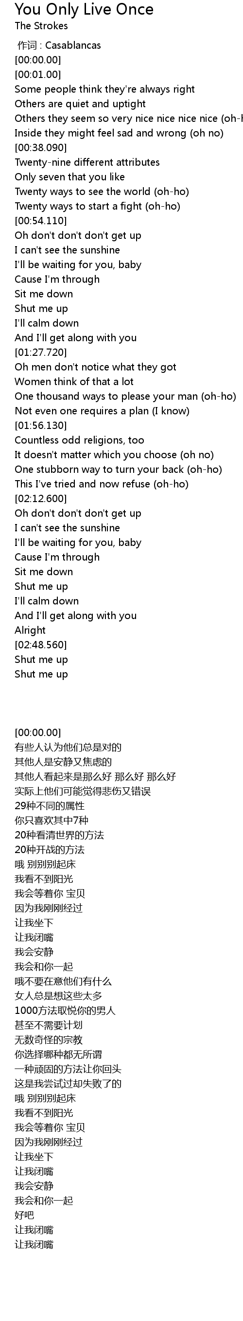 | [00:00.00] | 作词 : Casablancas |
