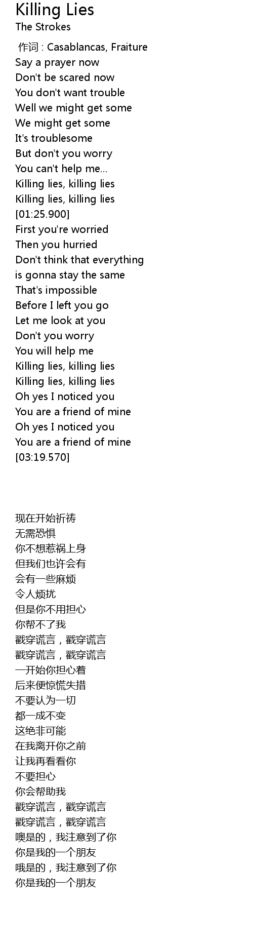 | [02:43.510] | Killing lies, killing lies |