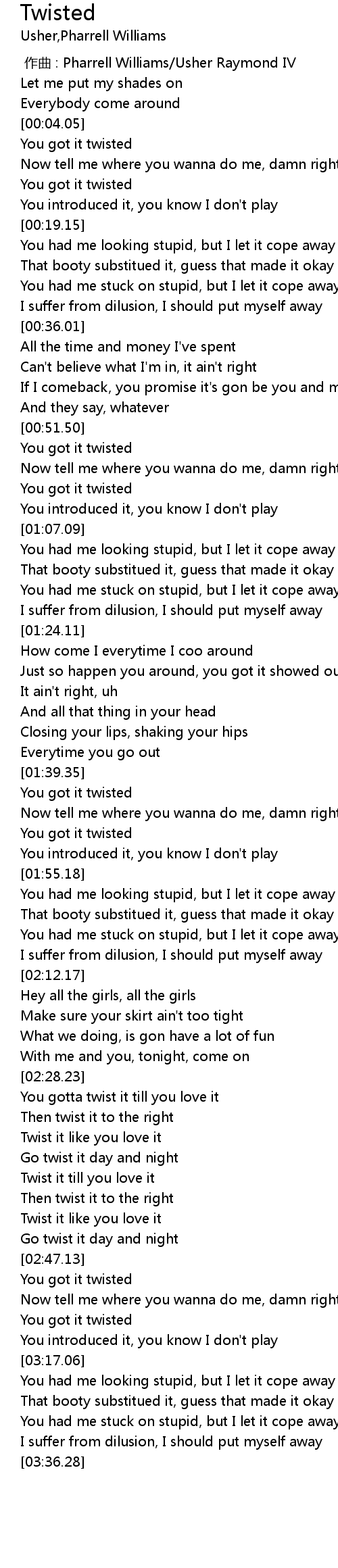 | [00:00.00] | 作曲 : Pharrell Williams/Usher Raymond IV |