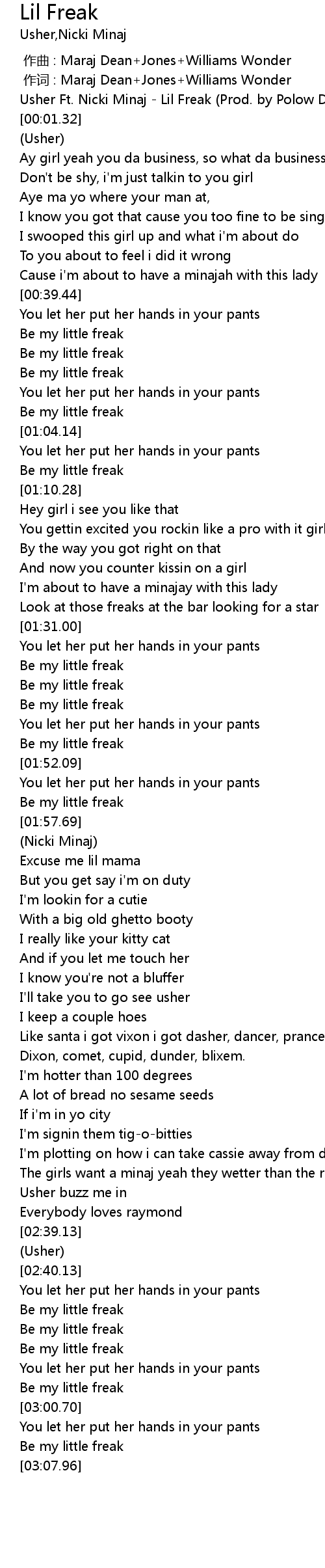 | [00:00.32] | Usher Ft. Nicki Minaj - Lil Freak (Prod. by Polow Da Don) |