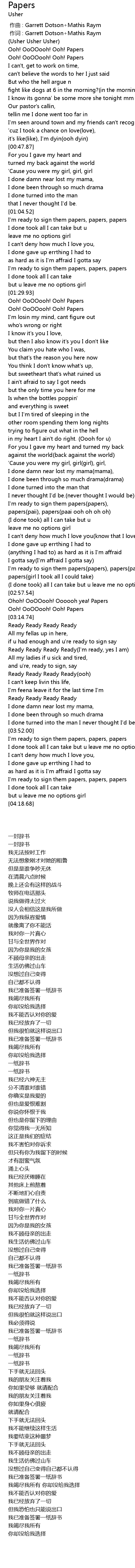 | [02:52.94] | papers(girl I took all I could take) |