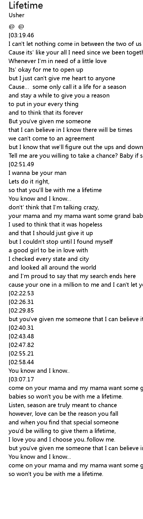 | [04:22.45][02:58.44] | Lets do it right, so that you' ll be with me a lifetime |