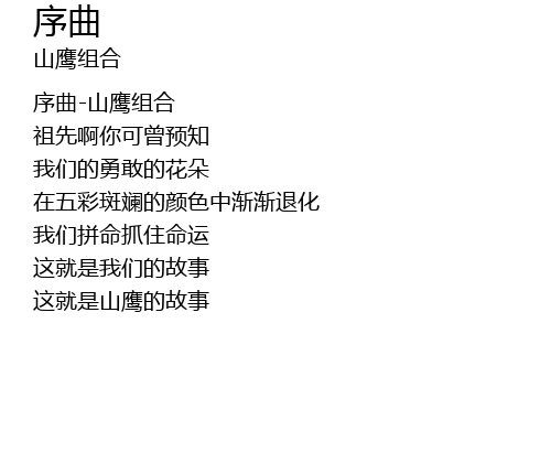 | [00:00.410] | 序曲-山鹰组合 |