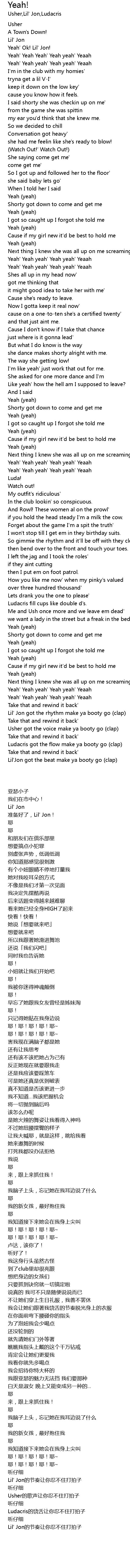 | [00:03.720] | 准备好了,Lil' Jon! |