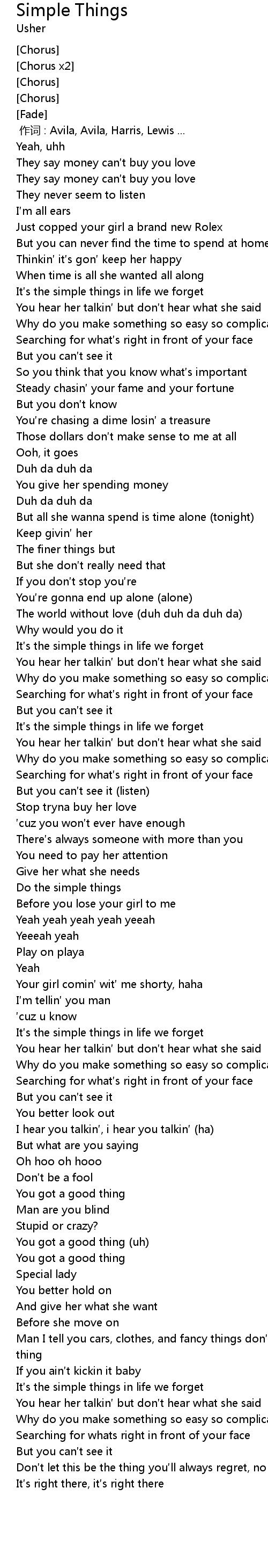 | [00:00.00] | 作词 : Avila, Avila, Harris, Lewis ... |