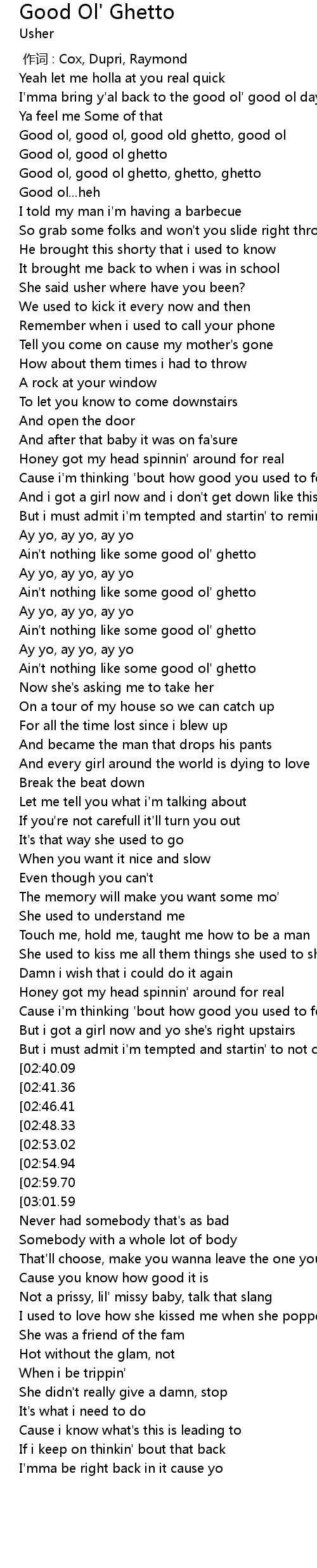 | [00:13.31] | Good ol, good ol, good old ghetto, good ol |