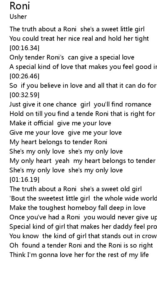 | [00:05.28] | The truth about a Roni she's a sweet little girl |