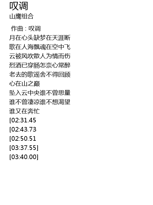 | [00:00.00] | 作曲 : 叹调 |