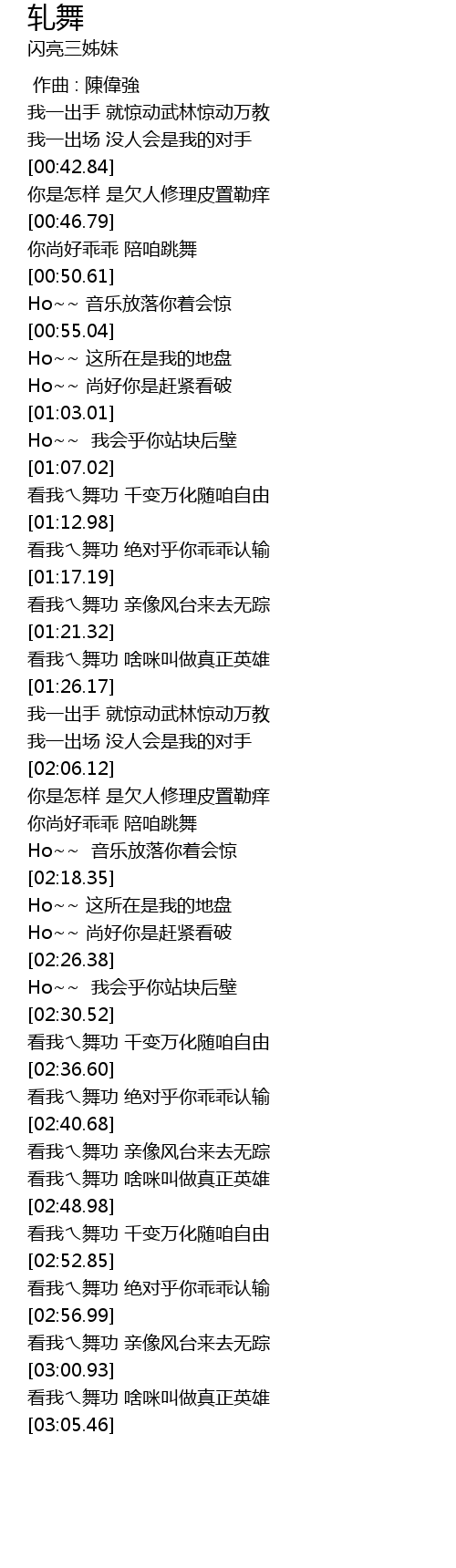 | [02:33.15] | 看我ㄟ舞功 千变万化随咱自由 |