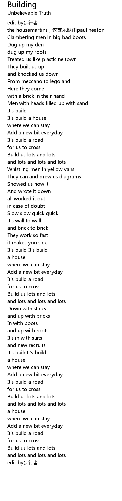 | [01:02.11] | It' s build a house |