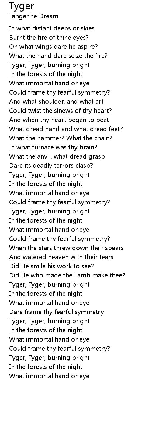 Tyger, Tyger, burning bright |