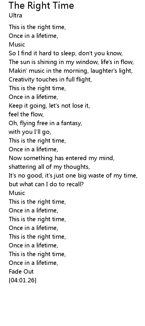 | [00:00.72] | This is the right time, |