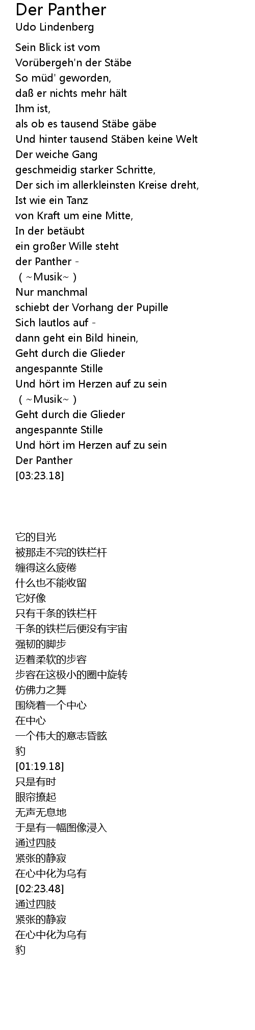 | [00:37.76] | Und hinter tausend Stäben keine Welt |