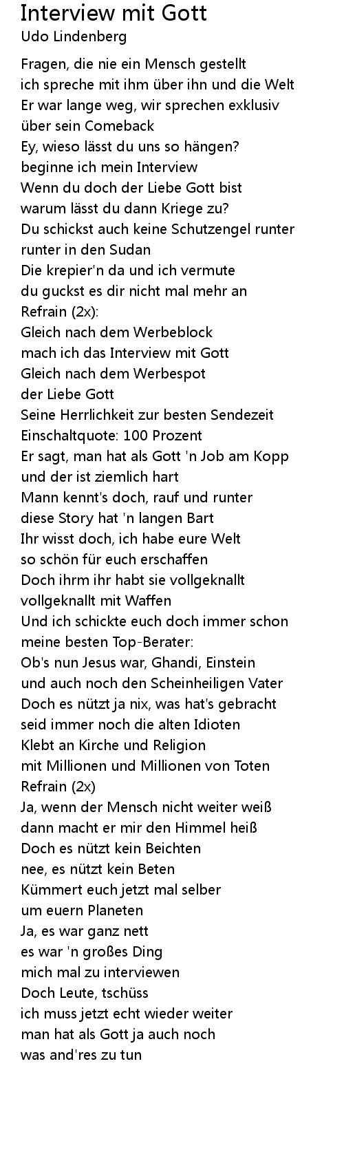 | Er sagt, man hat als Gott 'n Job am Kopp | |