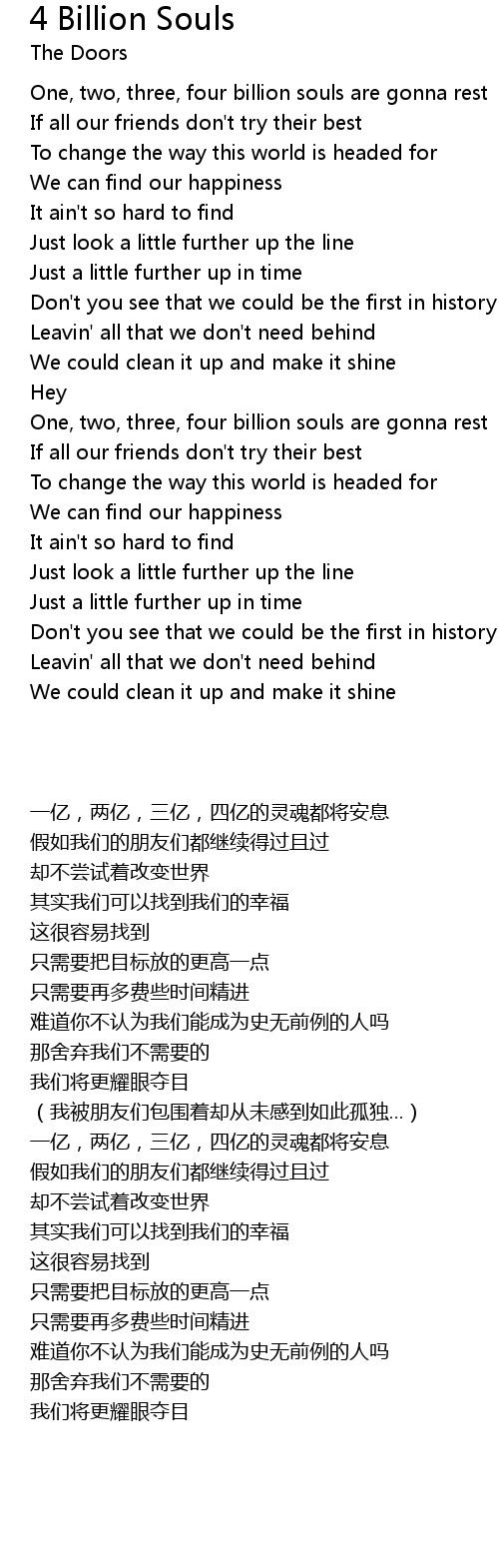 One, two, three, four billion souls are gonna rest |