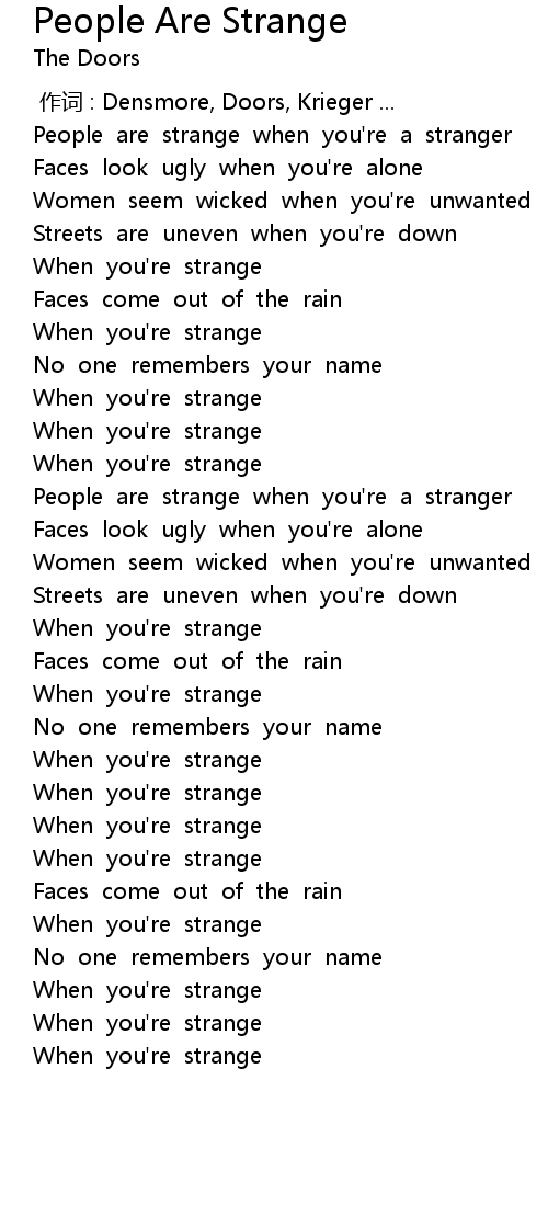 | [00:02.22] | People are strange when you' re a stranger |