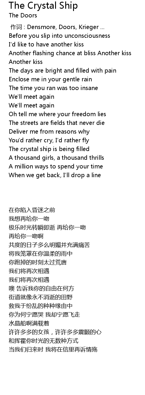 | [00:00.00] | 作词 : Densmore, Doors, Krieger ... |