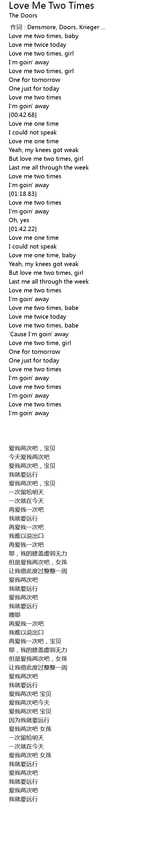 | [00:00.00] | 作词 : Densmore, Doors, Krieger ... |