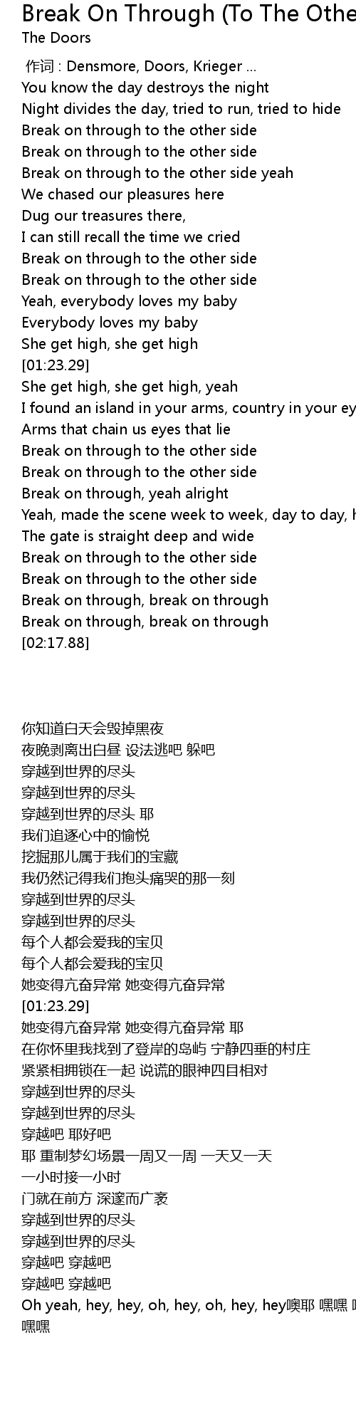 | [00:23.74] | Break on through to the other side yeah |
