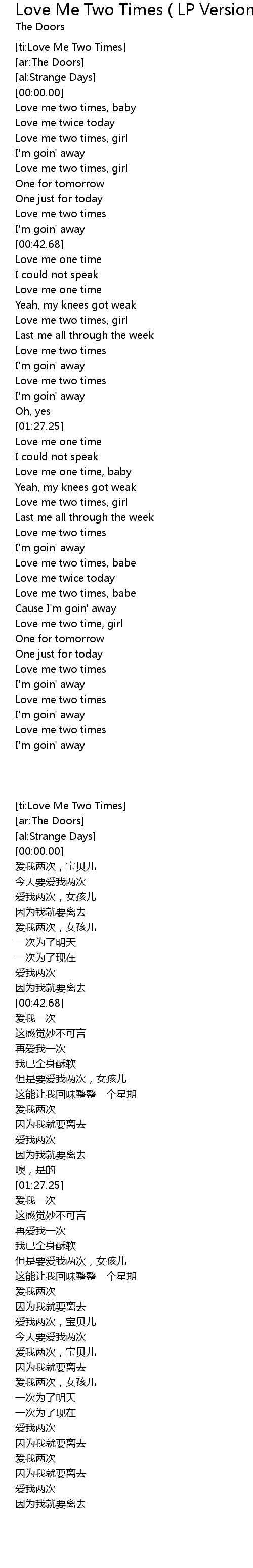 | [02:28.27] | Love me two times, babe |