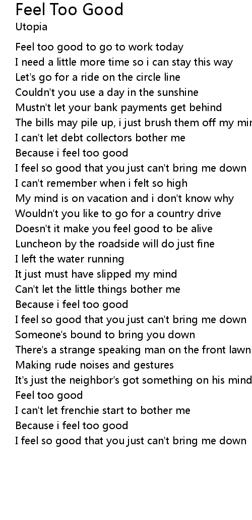 Because i feel too good |