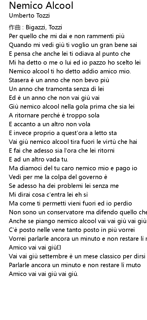 | Anche se piango nemico alcool vai vai giu vai giu | |