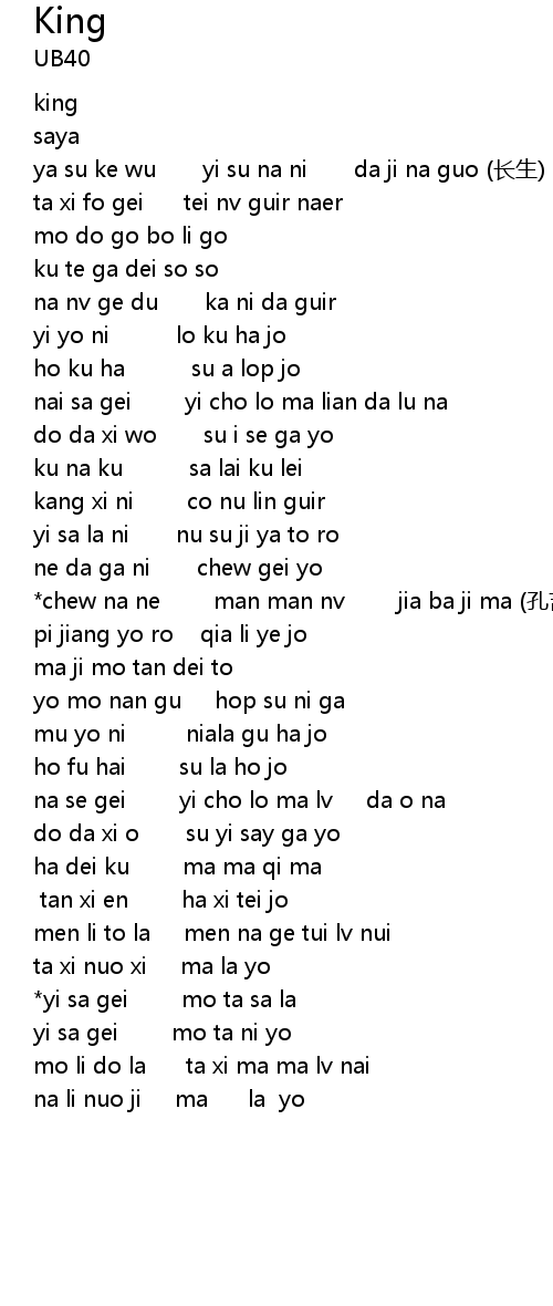 | *chew na ne man man nv jia ba ji ma (孔吉) | |