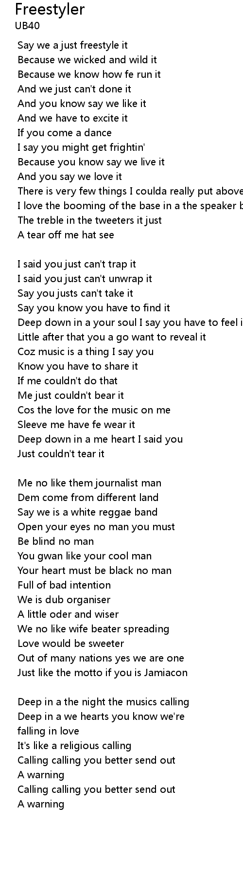 | Say we a just freestyle it | |