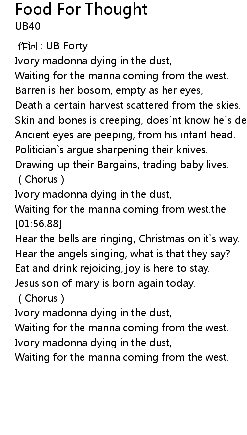 | [01:51.06] | Waiting for the manna coming from west. the |