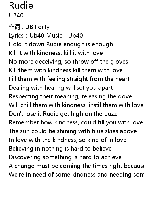 | Hold it down Rudie enough is enough Chorus 1 | |