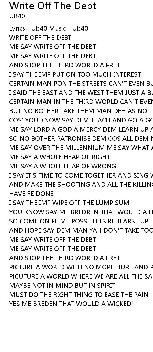 | ME SAY WRITE OFF THE DEBT Chorus | |