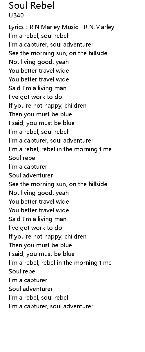| I'm a rebel, soul rebel | |