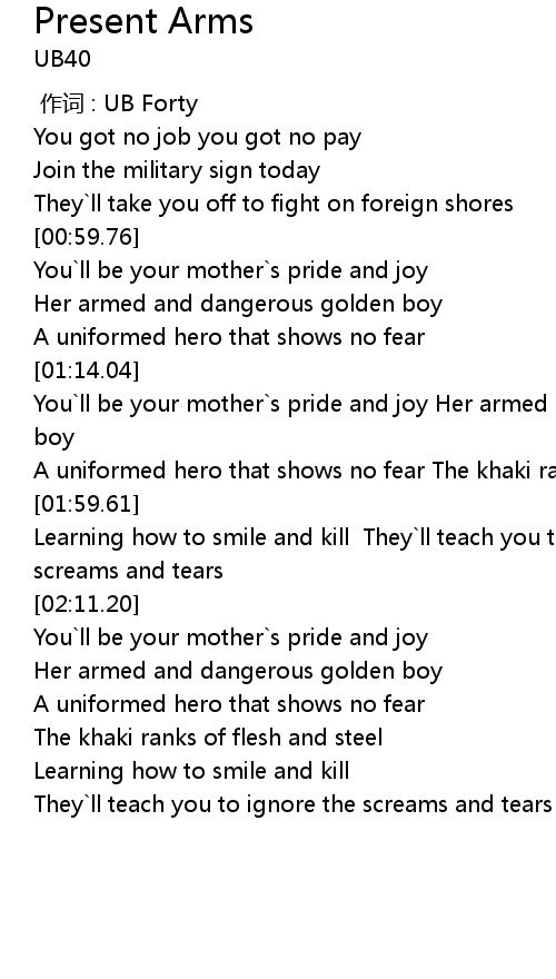 | [00:49.59] | Join the military sign today |