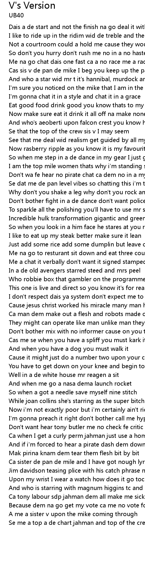 Don't want hear tony butler me no check fe critic |