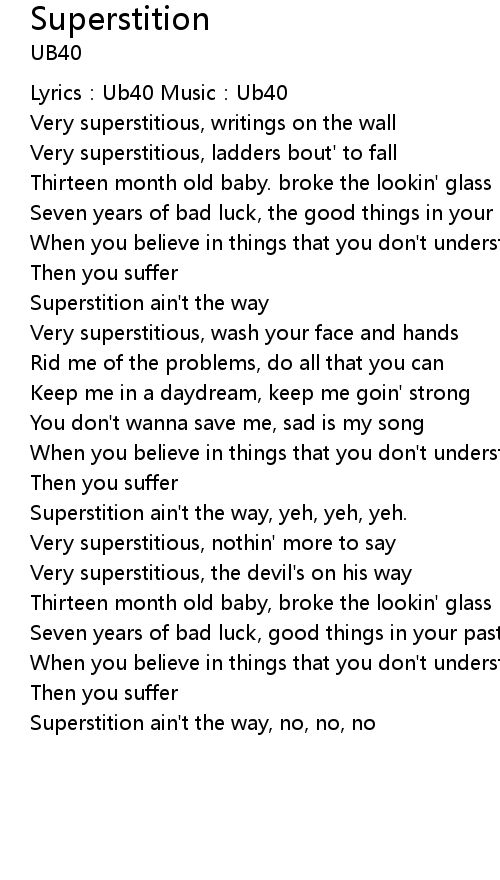 | Superstition ain' t the way, yeh, yeh, yeh. | |