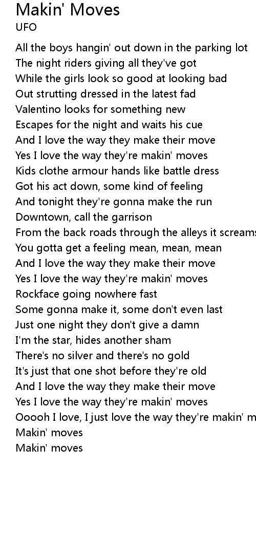 Ooooh I love, I just love the way they're makin' moves |