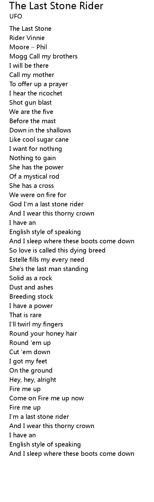 | God I'm a last stone rider | |