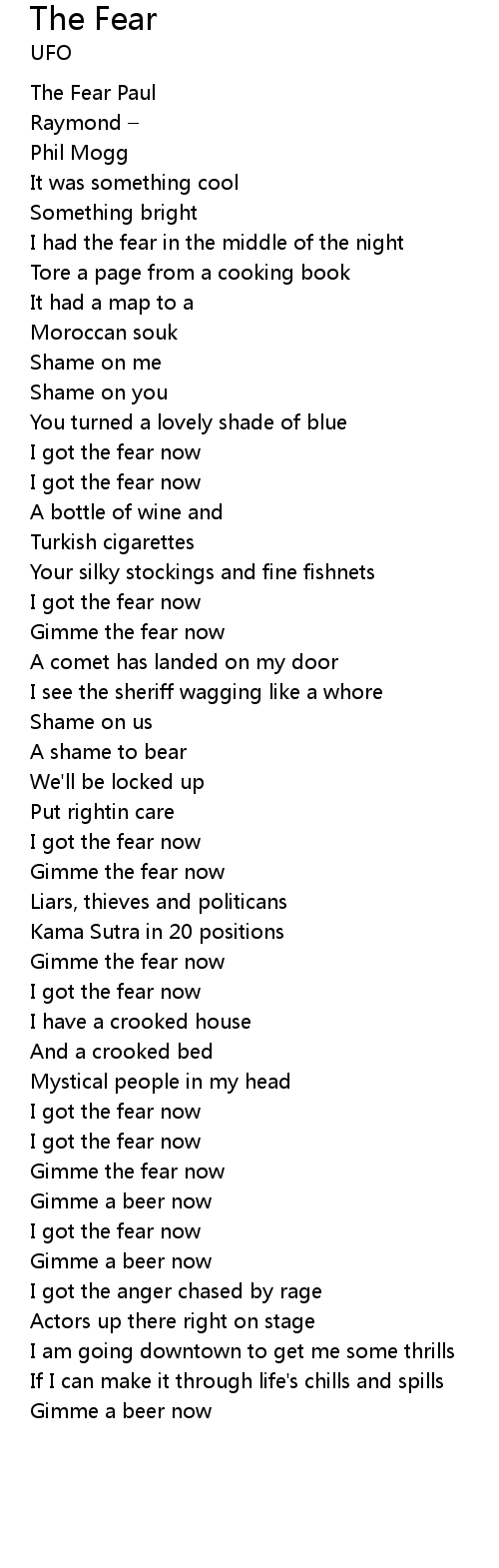 | I got the fear now | |