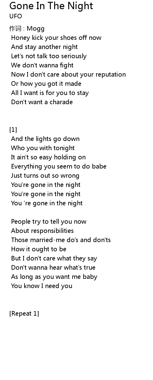 | 歌曲 | Gone In The Night |