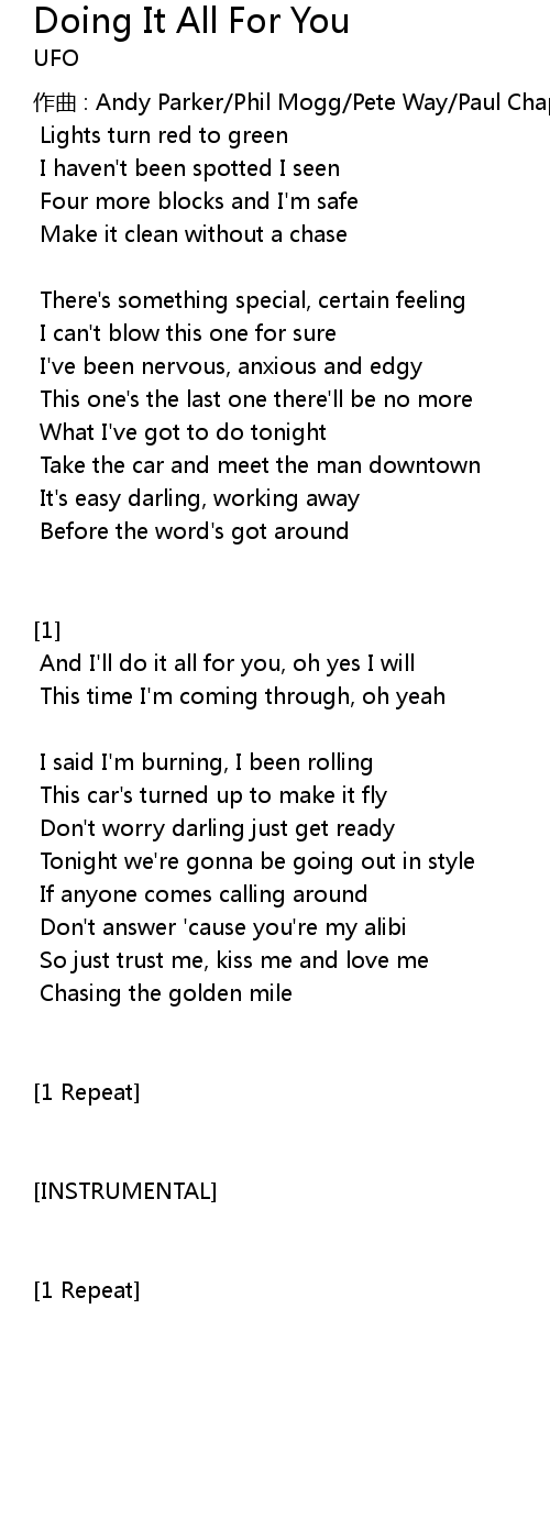 | 歌曲 | Doing It All For You |