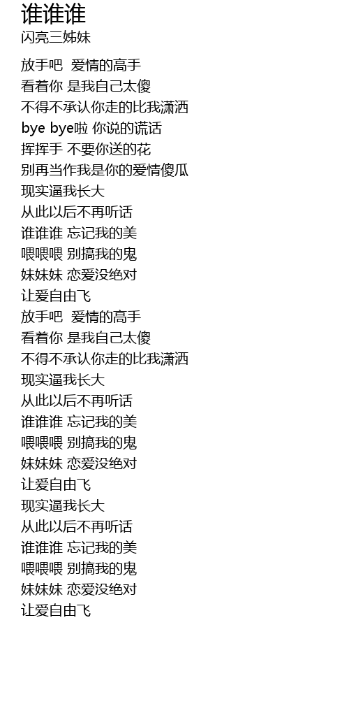 | 歌曲 | 谁谁谁 |