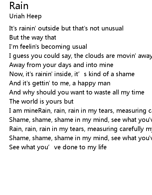 | Rain, rain, rain in my tears, measuring carefully my years | |