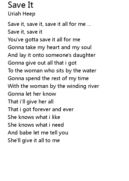 | Save it, save it, save it all for me ... | |