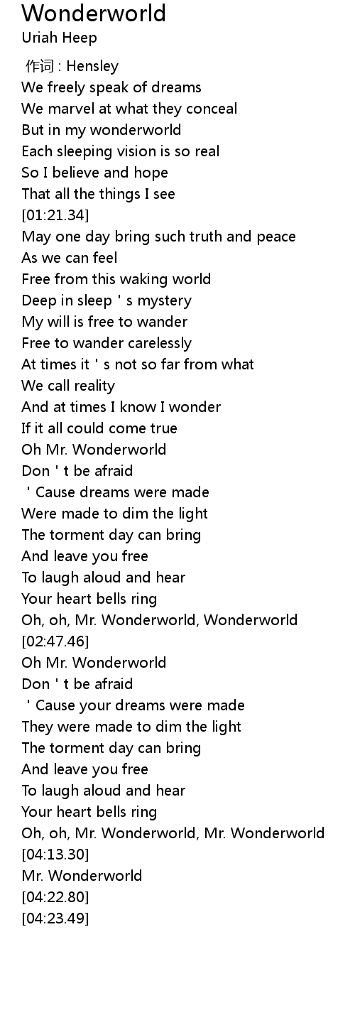 | [01:57.82] | Oh Mr. Wonderworld |