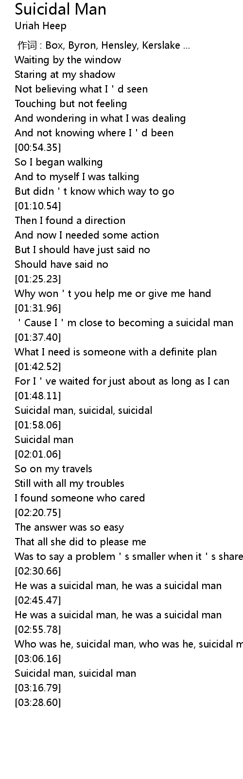 | [01:51.74] | Suicidal man, suicidal, suicidal |