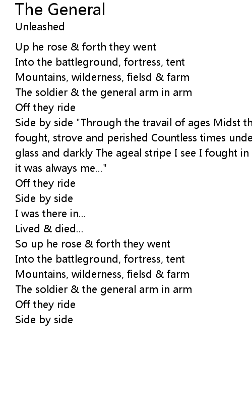 Side by side "Through the travail of ages Midst the pomp & toils of war Have I fought, strove and perished Countless times under the stars As it through a glass and darkly The ageal stripe I see I fought in many guises, many names But it was always me..." |
