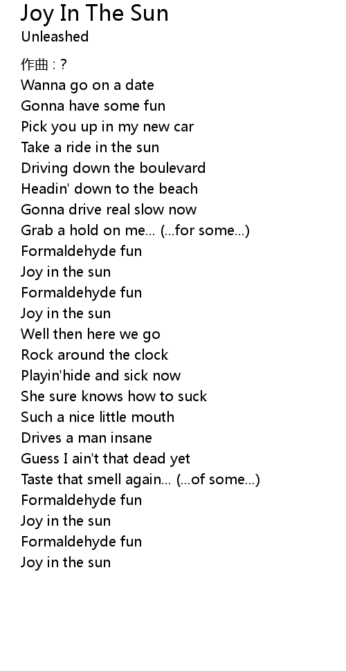 | 歌曲 | Joy In The Sun |