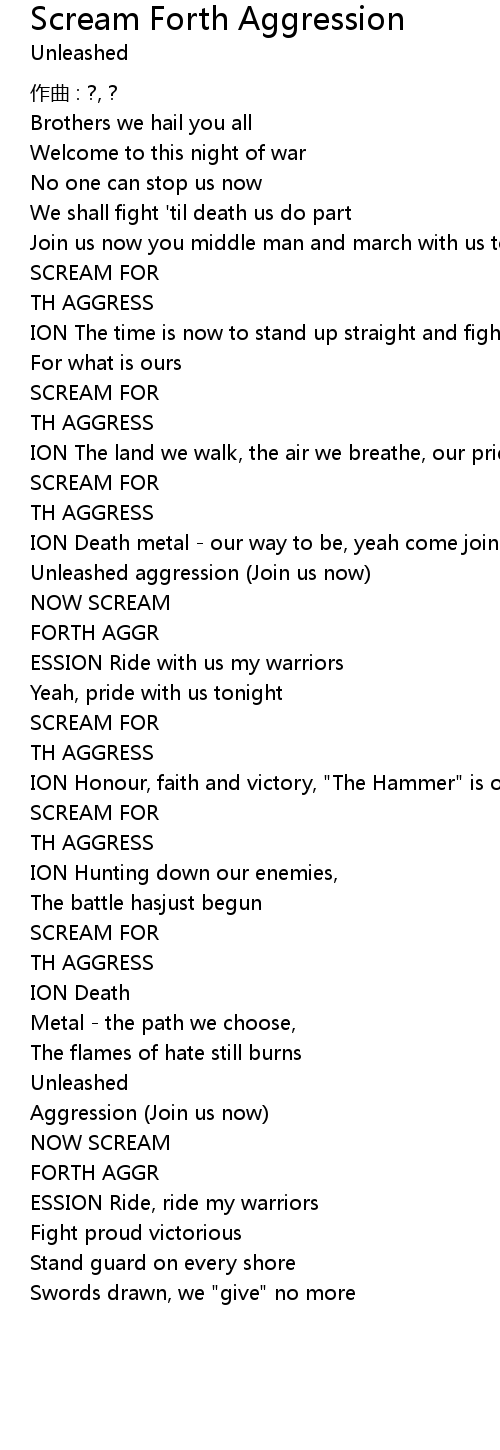 | Unleashed aggression (Join us now) | |