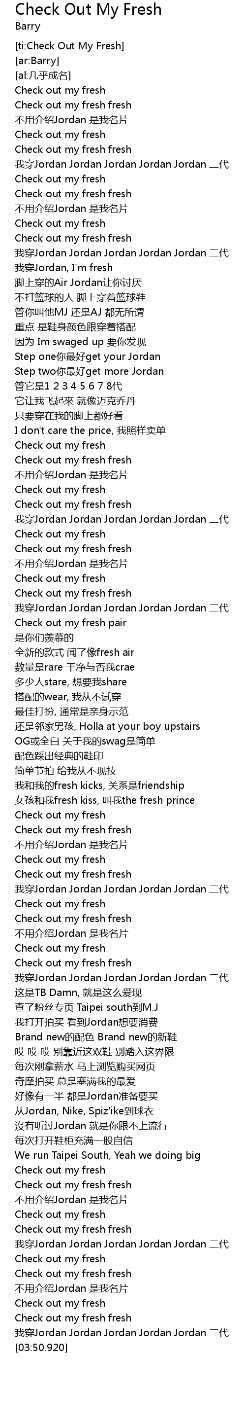| [00:48.830] | wo chuan Jordan, I' m fresh |