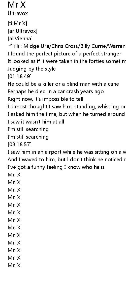| [ti:Mr X] | |
